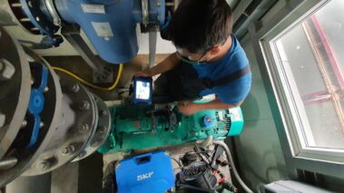 Echipa de Ingineri / tehnicieni Hidropump, folosește sistemele cu laser SKF pentru a efectua alinierile de arbori.